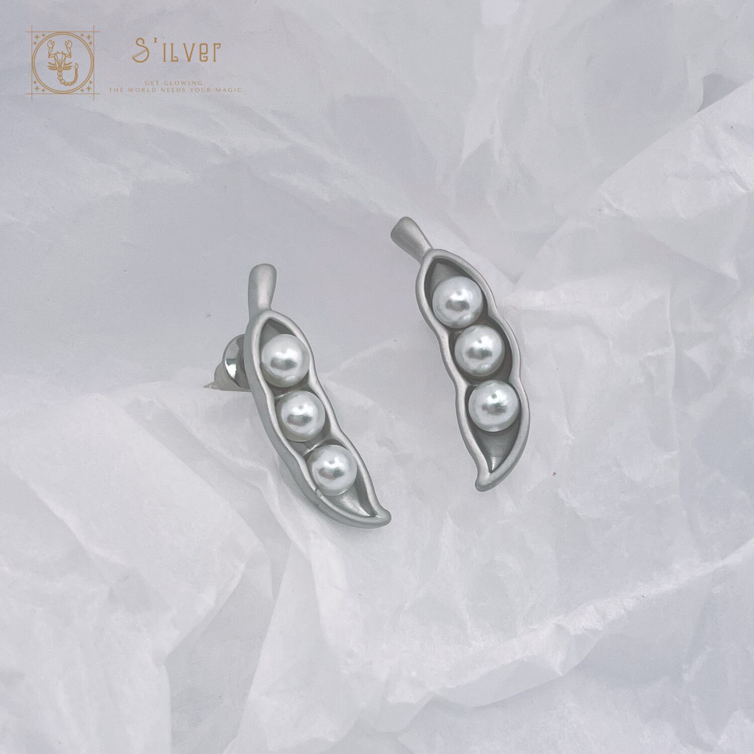 【 S925ポスト 】 マットシルバー ビーンズピアス